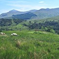 Continuamos a caminhar, agora pela Auchtertyre Farm, e apreciamos agora as Tyndrum Hills. Beinn Dubhcraig (978 m), Ben Lui (1127 m), e Beinn Chuirn (880 m). As quintas de montanha, como as que aqui atravessamos, são imensas, sendo a maior parte do terreno usado para pastagem. Atravessar o vale, depois de tantas subidas e descidas, é relaxante. É o tipo de paisagem que associo à Escócia e que me enche as medidas. Verde a perder de vista, horizontes recortados por montanhas de contornos suaves e ovelhinhas brancas a pastar tranquilamente em campo aberto.